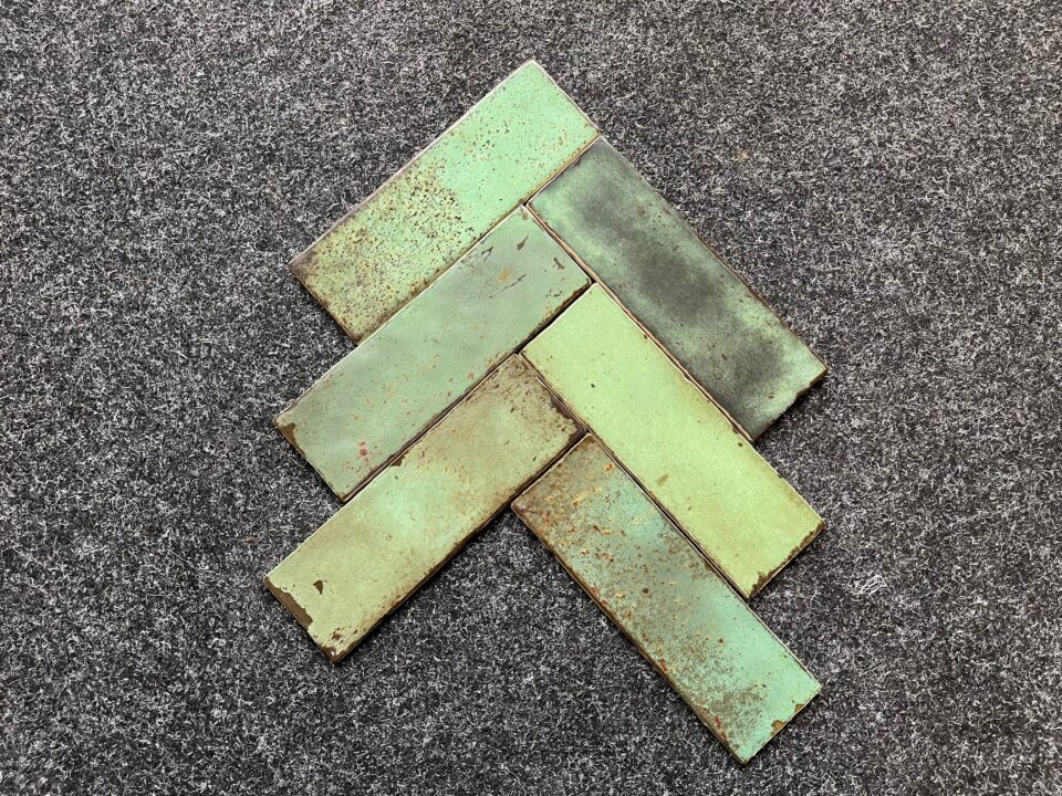 Płytki cegiełki z serii Amazonia charakteryzują się nieregularnym wykończeniem, metalicznymi efektami i żywą prezencją.