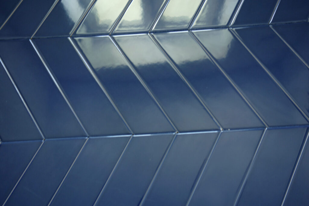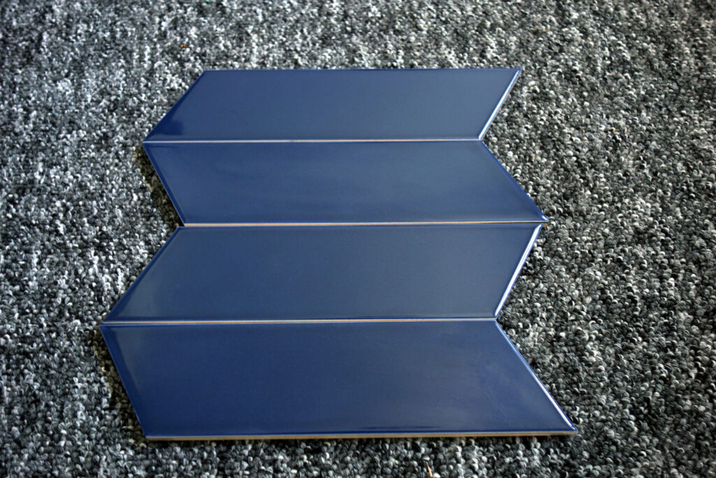 PŁYTKI CHEVRON NIEBIESKI połysk połysk od kliku sezonów są absolutnym hitem. Za ich sukcesem stoi ich ponadczasowy kształt oraz intensywny niebieski - kobaltowy kolor. Dzięki tym cechom znajdują uznanie w oczach zarówno projektantów jak i odbiorców indywidualnych. Idelnie komponują się z białym marmurem carrara. Znajdują zastosowanie w strefach mokrych - pod natryskami czy nad wannami. Ich nieduży kształt powoduje, że PŁYTKI CHEVRON NIEBIESKI połysk świetnie wpisują się w aranżacje kuchenne. Głównie ma to miejsce na tak zwanych fartuchach kuchennych.