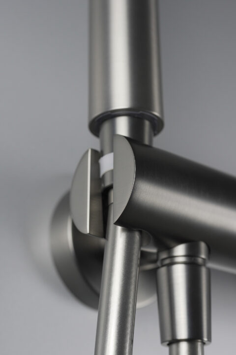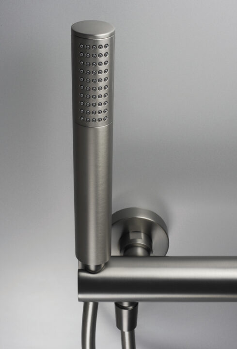 Bateria Silia wykonana została z wysokogatunkowego mosiądzu i wykończona w oryginalnym kolorze titanium. Słuchawka posiada przyjemny deszczowy strumień oraz system Anti - Calc, który ułatwia utrzymanie jej w czystości. Uchwyt słuchawki zintegrowany jest z korpusem baterii, tworząc unikatowy design. Model ten wyróżnia się smukłym, opływowym kształtem i skrupulatnie przemyślaną dźwignią.