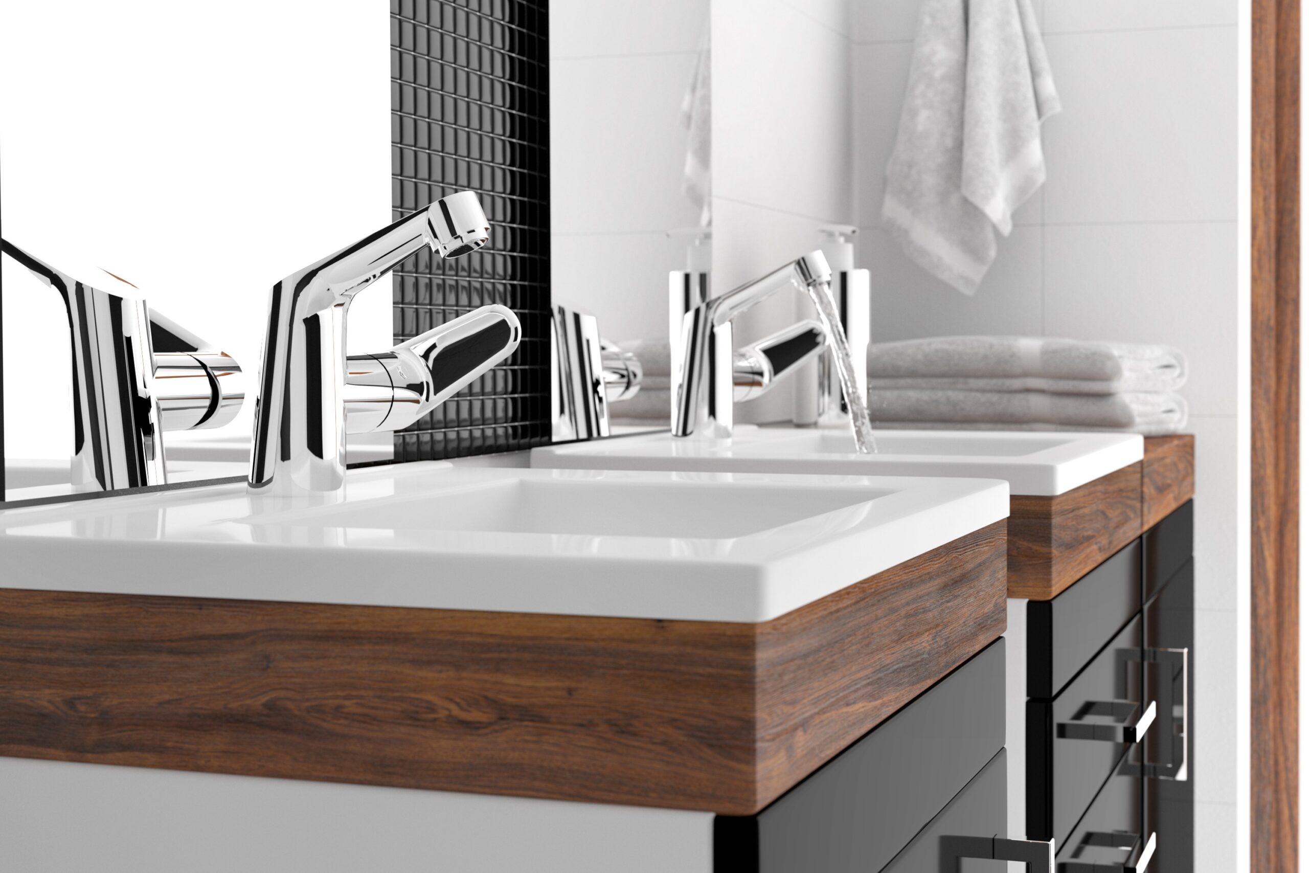Dźwignia boczna gwarantuje utrzymanie baterii w czystości podczas codziennego użytkowania. Na armaturze powstaje dużo mniej zacieków i osadu kamiennego. Jest to również dobre rozwiązanie w przypadku gdy są nisko zawieszone szafki, półki lub lustra.