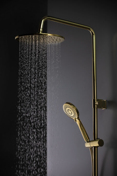 Seria Arnika łączy funkcjonalność z łagodnymi, występującymi w przyrodzie kształtami. Inspirowana jest duńskim stylem hygge, gdzie dominuje harmonia i minimalizm. Deszczownia Arnika w efektownym złotym wykończeniu składa się z baterii mieszaczowej z wygodnym pokrętłem, drążka o regulowanej wysokości, głowicy natryskowej oraz węża ze słuchawką prysznicową. Głowica natryskowa wykonana jest z mosiądzu i ma średnicę 25 cm, co gwarantuje przyjemną i komfortową kąpiel. Dodatkowo użytkownik może dopasować ustawienie słuchawki do swoich potrzeb, dzięki możliwości regulacji jej wysokości i kąta nachylenia.
