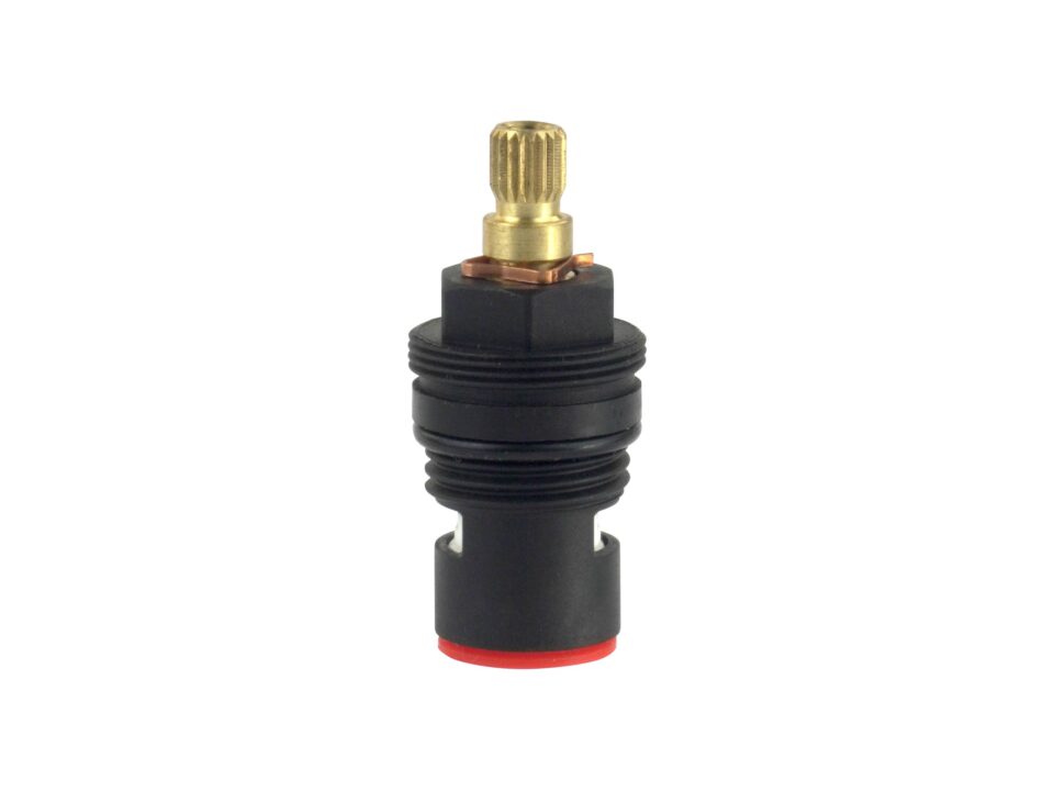 Głowica ceramiczna to trwały produkt, który zapewnia szczelność i bezawaryjność baterii. Powierzchnia jej jest gładka, dzięki czemu zapobiega osadzaniu się kamienia. Kąt obrotu głowicy wynosi 90°, co sprawia, że szybko się otwiera i zamyka. Wykonana jest z wytrzymałego tworzywa, a czpień montażowy posiada 20 klinów. Produkt przeznaczony jest do baterii dwuuchwytowej, do wody ciepłej.