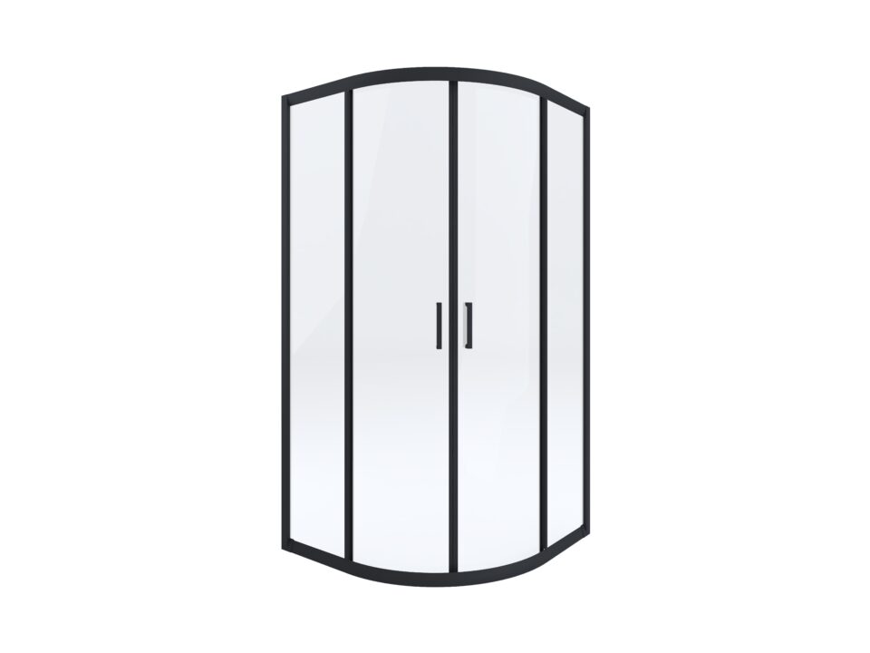 Półokrągła kabina prysznicowa Funkia przykuwa uwagę swoim designem. Transparentne szkło hartowane w połączeniu z matowym, czarnym wykończeniem to idealne rozwiązanie dla miłośników nowoczesnych aranżacji wnętrz. Może być zamontowana na brodziku lub bezpośrednio na płytkach. Produkt wyposażony został w system cichego zamknięcia i wypinane dolne rolki.
