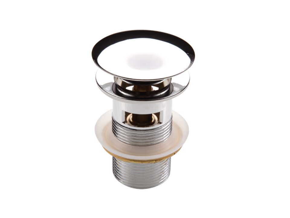 Korek click-clack to wysokiej jakości produkt, wykonany z trwałego mosiądzu. Otwarcie i zamknięcie odpływu następuje przez naciśnięcie korka palcem. Jest to model umywalkowy oraz bidetowy, pasuje do umywalek z przelewem. Korek wykończony jest w eleganckim, błyszczącym chromie.