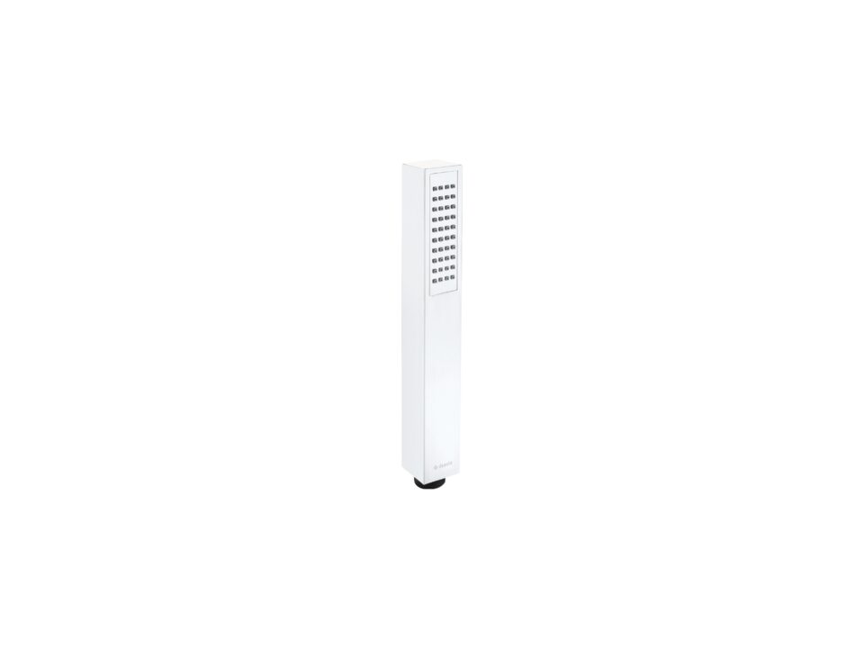 Słuchawka Square ma prostokątny kształt i optymalny deszczowy strumień. Słuchawka wyposażona została w system Anti-calc, który przeciwdziała osadzaniu się kamienia i ułatwia utrzymanie jej w czystości. Produkt wykończony jest w matowej bieli i idealnie pasuje do armatury w tym samym kolorze.