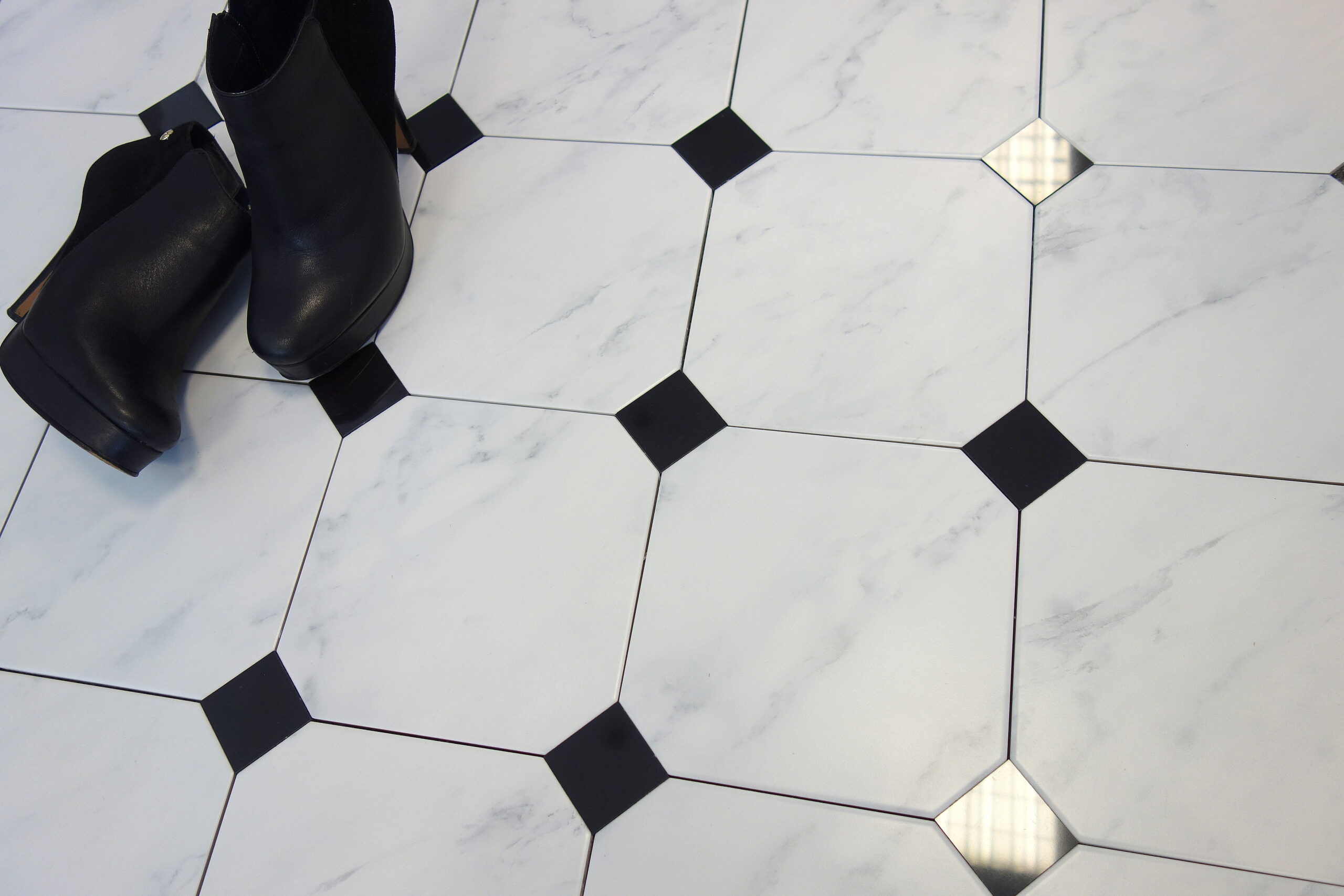W dobie dominacji "wielkiej płyty" długo szukaliśmy czegoś mniejszego i padło na te małe oktagony. Wybór przemyślany, a efekt w pełni zadowalający.