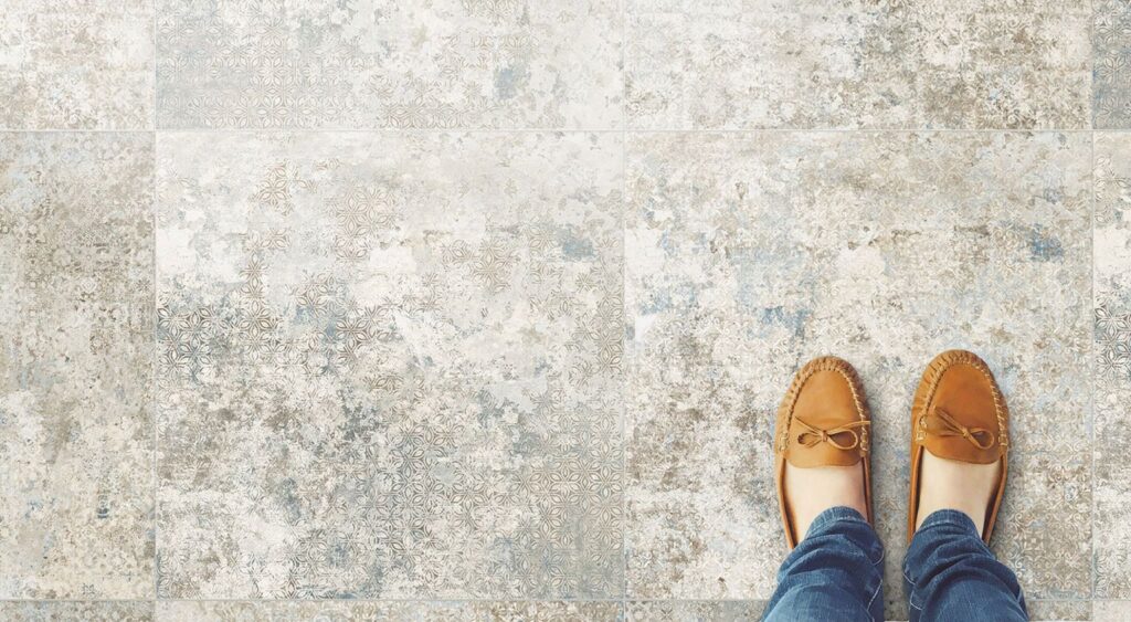 VINTAGE to linia płytek w wabi-sabi z przetartym dekoracyjnym motywem.