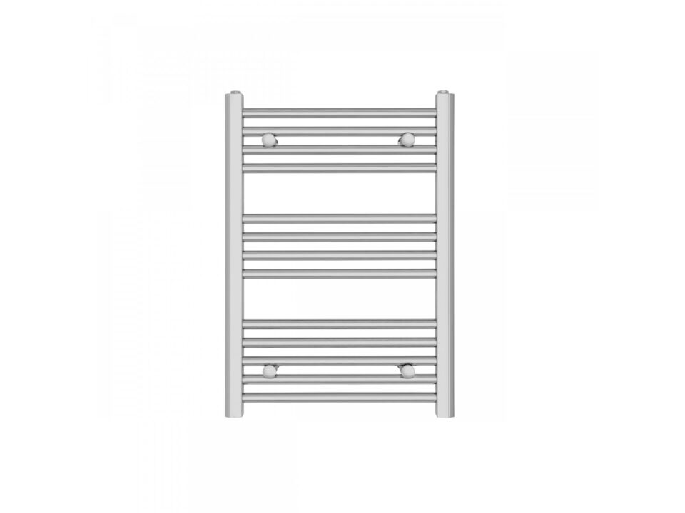 Prosty grzejnik łazienkowy drabinkowy zbudowany z dwóch kolektorów o przekroju “U” połączonych poziomo ułożonymi rurkami. Klasyczna i niezmiennie od lat popularna forma.