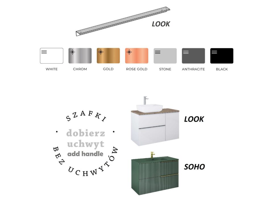 Wygląda bardzo efektownie i jest komfortowy w użytkowaniu. Uchwyt dedykowany do szafki i komody look, sprzedawany pojedynczo.