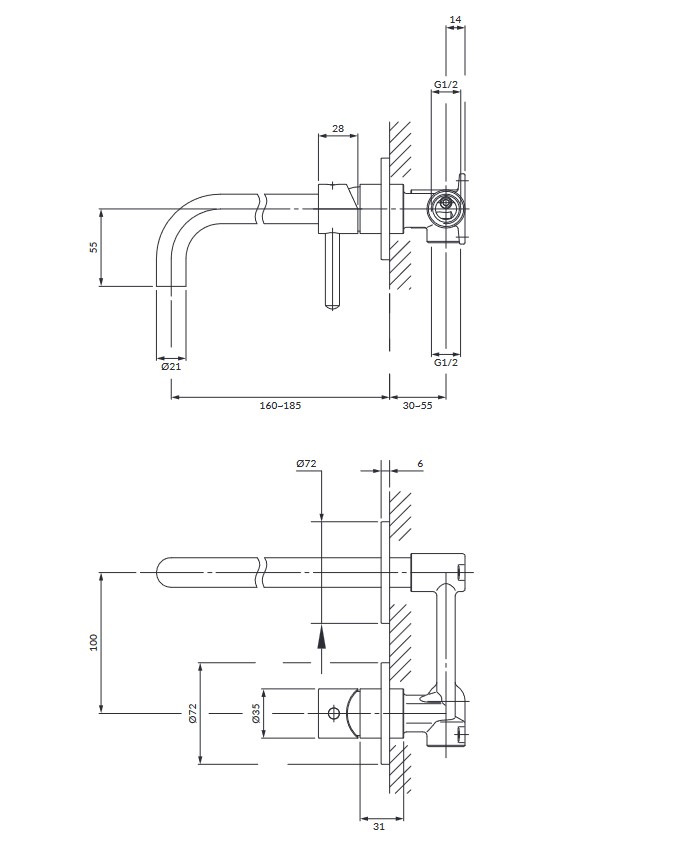 - zasięg wylewki od powierzchni płytek: 18,5 cm