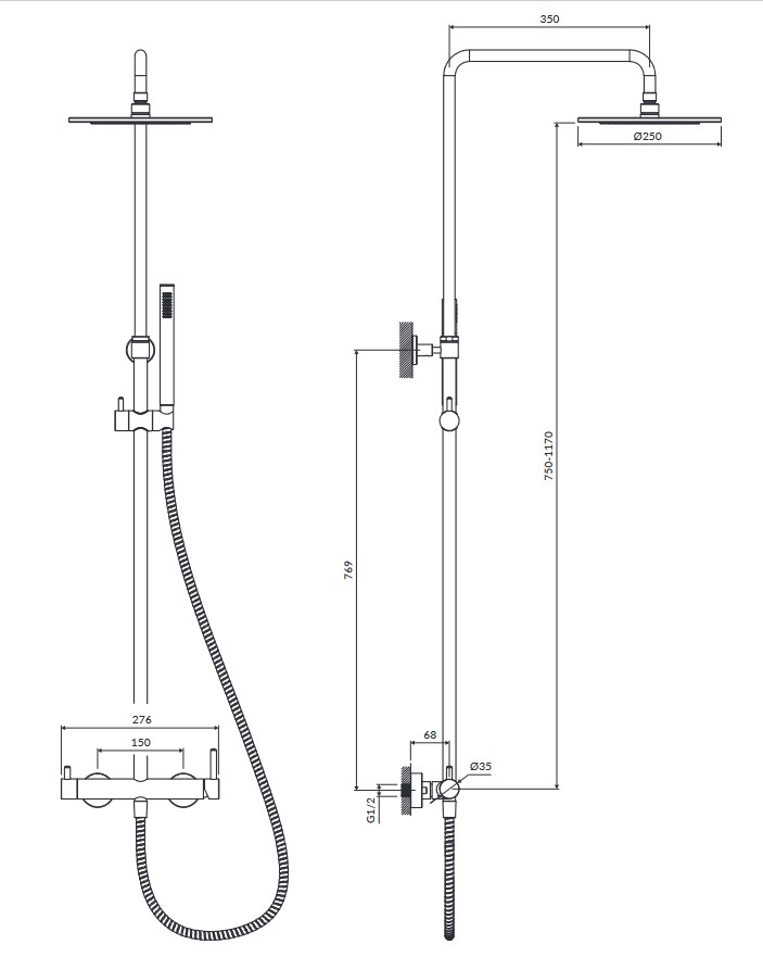 - wąż prysznicowy w osłonie mosiężnej, długość: 150 cm