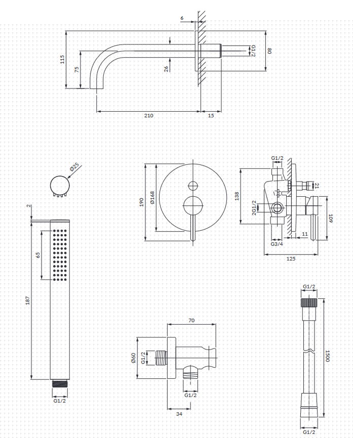 - przyłącze kątowe mosiężne (8873BL), z uchwytem na rączkę prysznicową