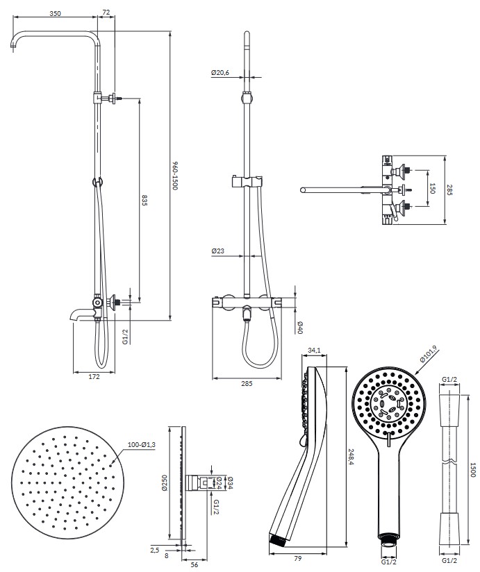 - regulowana wysokość, minimalna/maksymalna wysokość systemu: 96 cm/150 cm