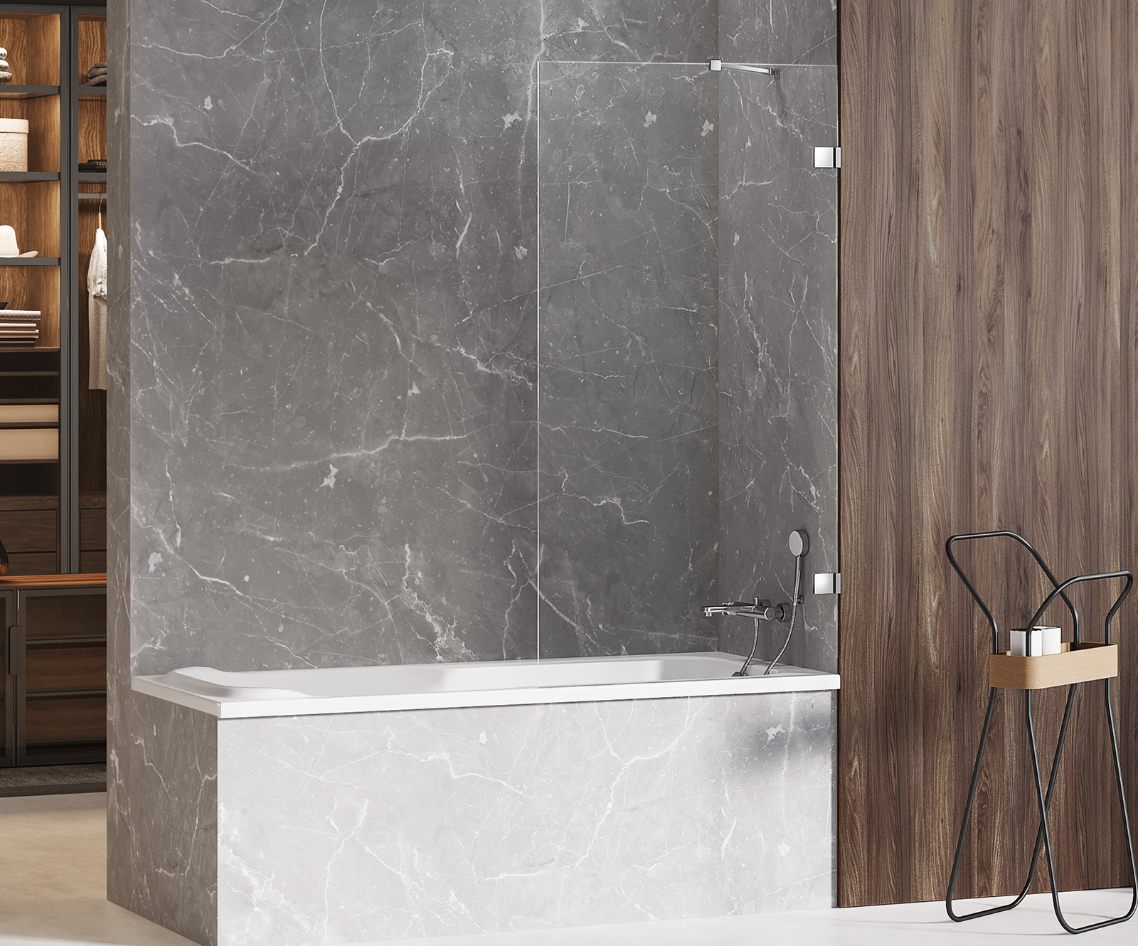 Parawan kąpielowy 1-elementowy, bezpieczne hartowane szkło 6 mm pokryte powłoką ochronną Active Shield, ułatwiającą czyszczenie.