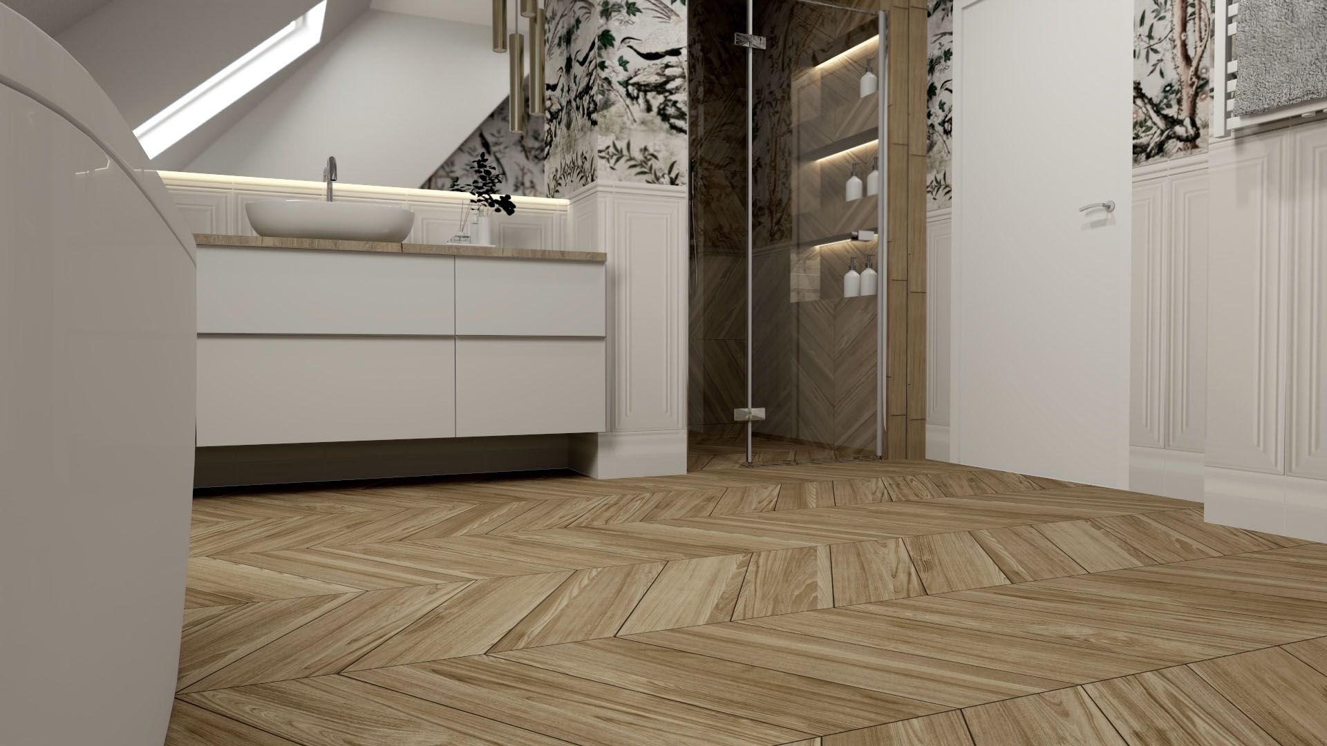 -Designerski wzór CHEVRON - jodła francuska w kolorze jasnej sosny