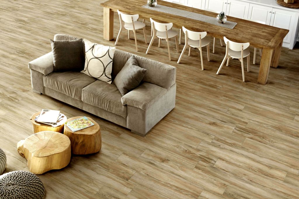 Wypukła struktura słoja drewna nadaje płytce antypoślizgowości.