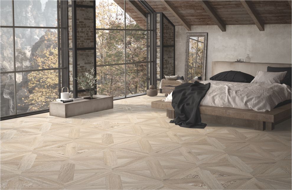 Piękna - gresowa imitacja parkietowych kasetonów