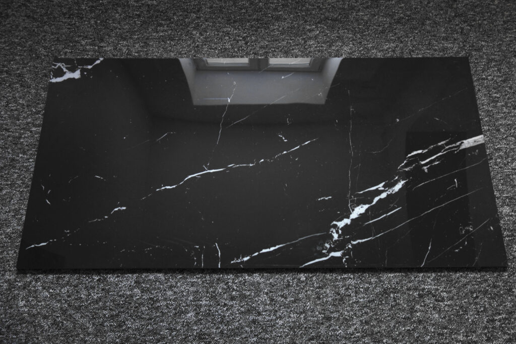 to piękny gres imitujący czarny marmur MARQUINA W WERSJI POLEROWANEJ