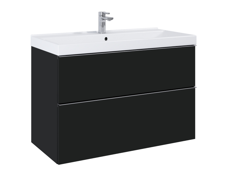 Szafka wykonana z materiałów wysokiej jakości, front i korpus z płyty laminowanej, lakierowanej w kolorze black mat. Szafka przygotowana do łączenia z umywalką lub blatem. Szafka sprzedawana jest bez uchwytów.