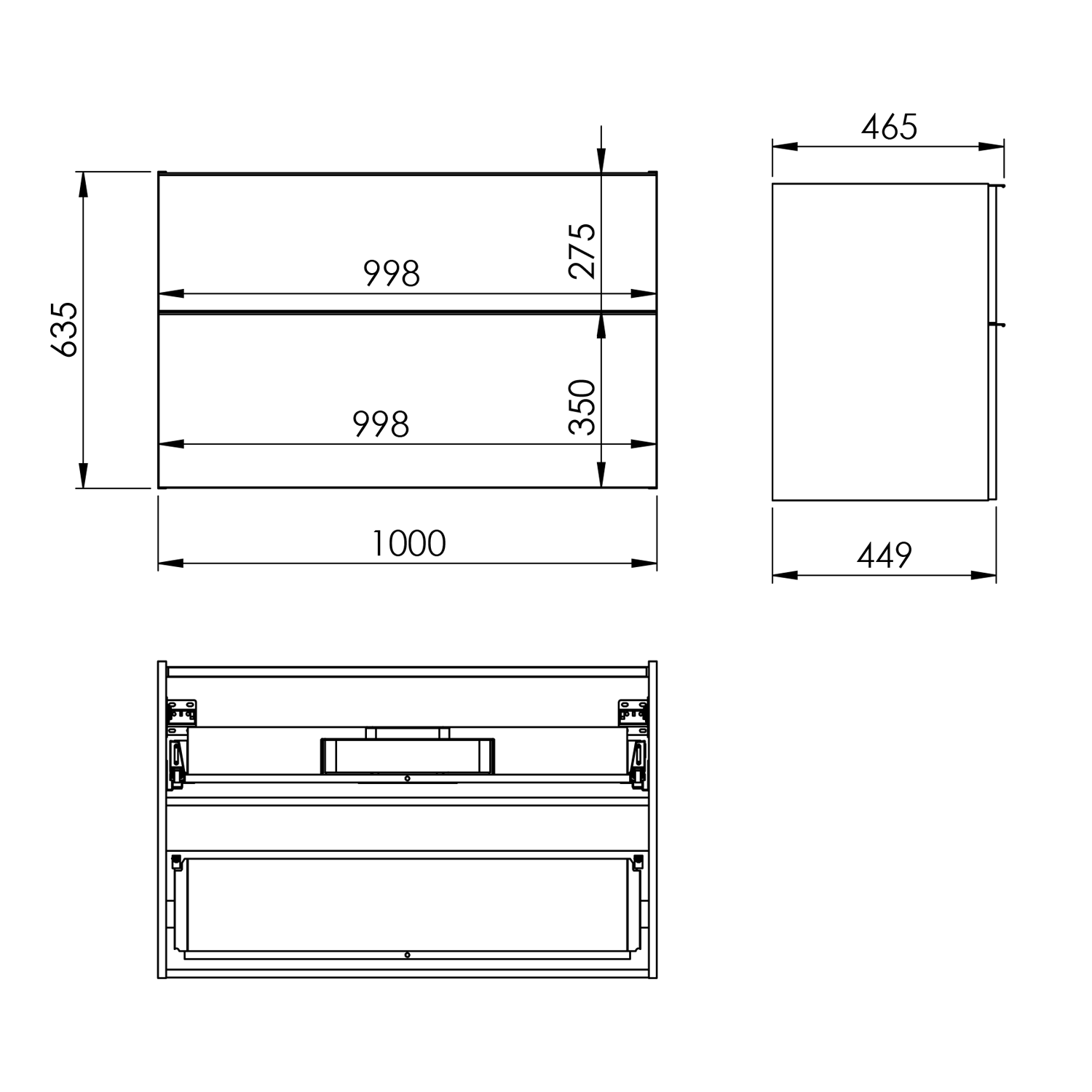 Szafka podumywalkowa Look 100 cm, 2 szuflady z funkcją cichego samodomyku oraz z pełnym wysuwem. Pierwsza szuflada zaopatrzona w organizer.