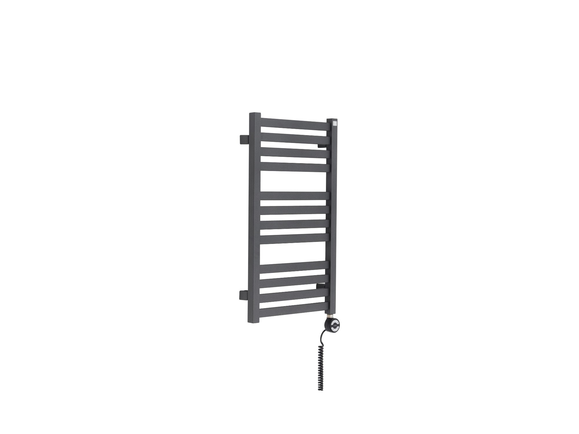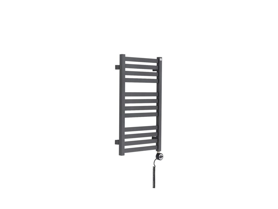 Produkt o wymiarach 710x400mm z grzałką elektryczną Terma Moa o mocy 300W zamontowaną z prawej strony grzejnika. Kabel spiralny z wtyczką.