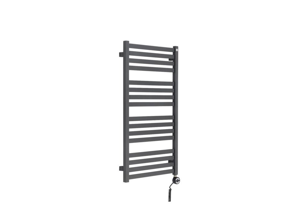 Produkt o wymiarach 960x500mm z grzałką elektryczną Terma Moa o mocy 400W zamontowaną z lewej strony grzejnika. Kabel spiralny z wtyczką.
