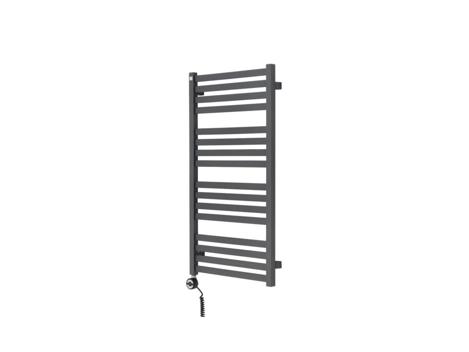 Produkt o wymiarach 960x500mm z grzałką elektryczną Terma Moa o mocy 400W zamontowaną z lewej strony grzejnika. Kabel spiralny z wtyczką.