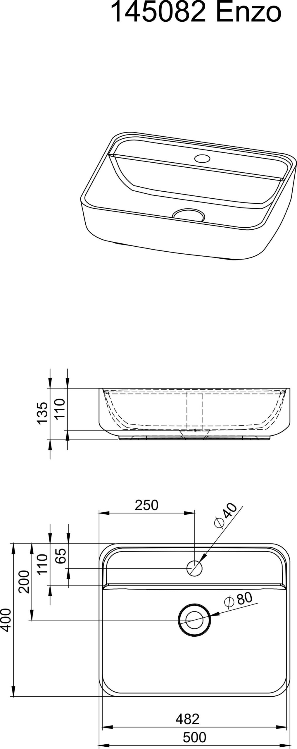 Rysunek techniczny umywalki: