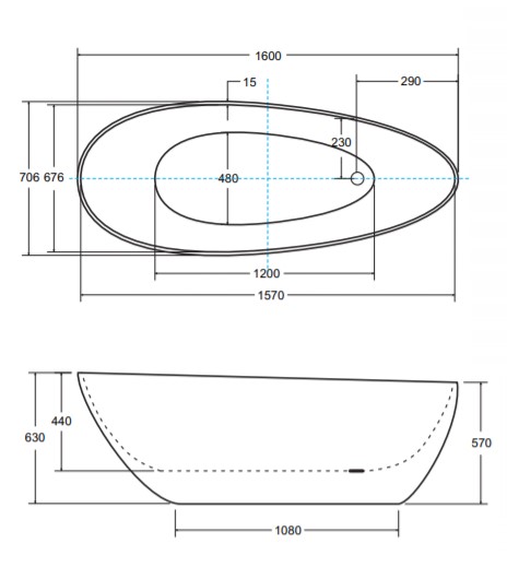 wanna wolnostojąca BESCO GOYA 160x70- RYSUNEK TECHNICZNY: