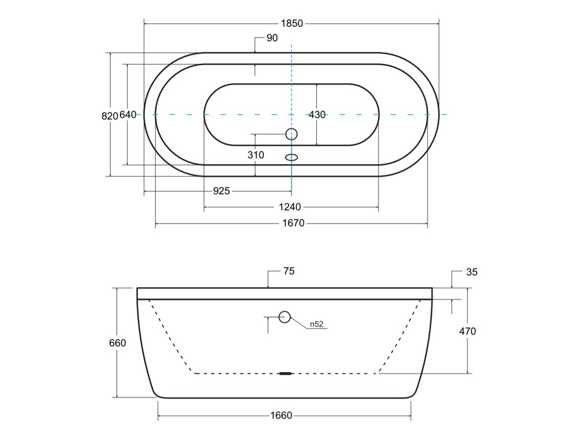 wanna wolnostojąca BESCO VICTORIA 185x83 - RYSUNEK TECHNICZNY: